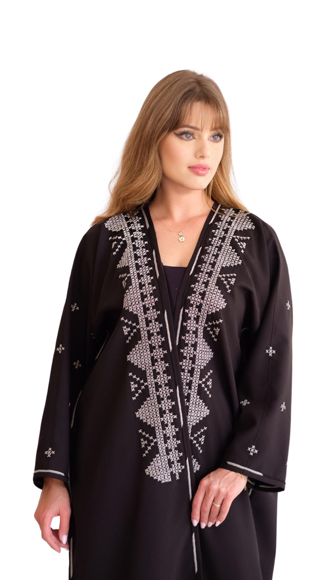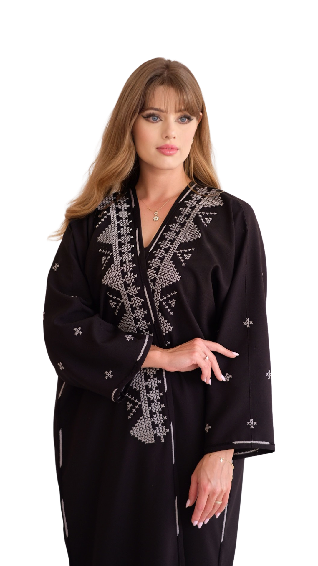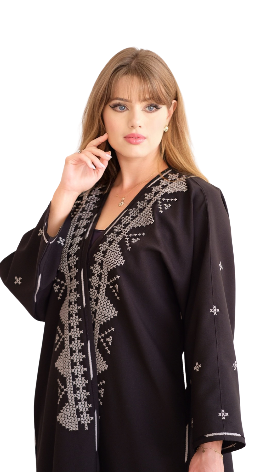 الشغل عبارة عن تطريز باللون الرصاصي