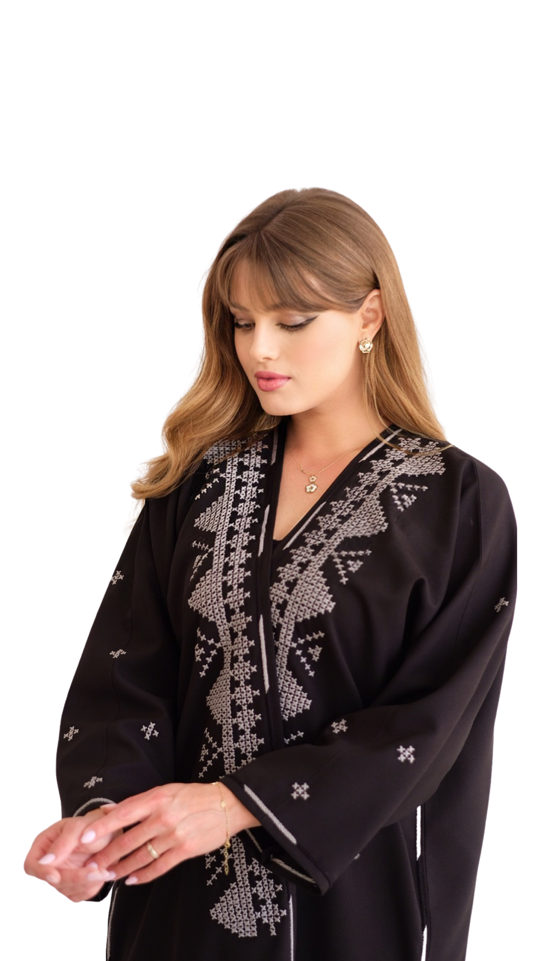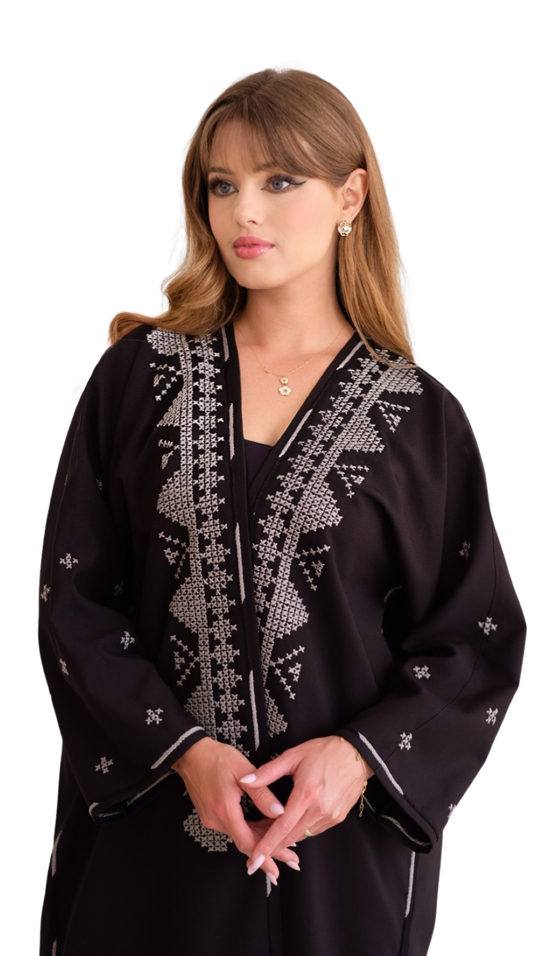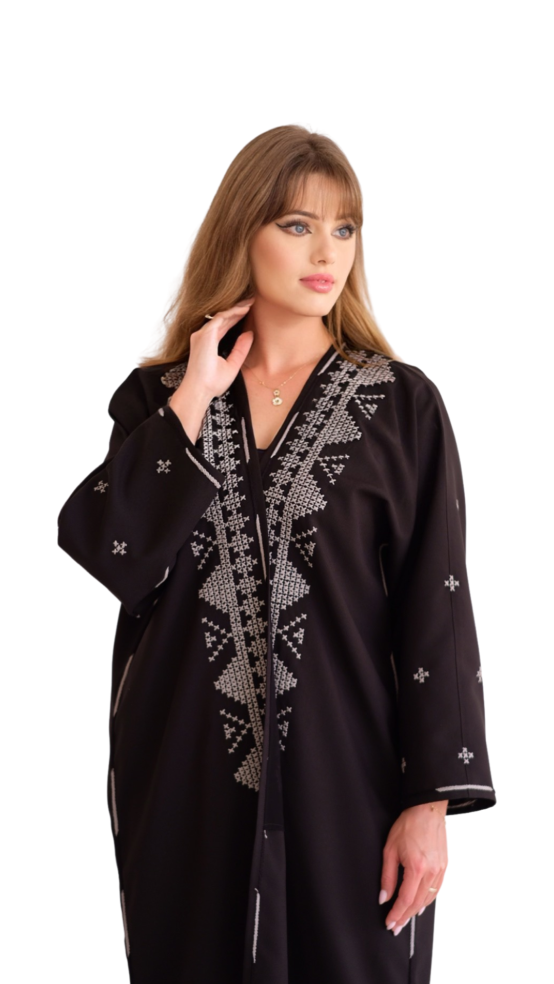 الشغل عبارة عن تطريز باللون الرصاصي